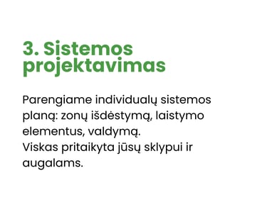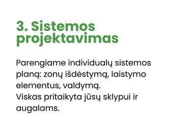 Suprojaktuojame sistemas pagal jūsų sklypo ypatybes ir augalų poreikius.
