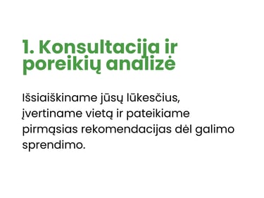 Konsultuojame, parenkame tinkamą sistemą ir augalus pagal vietos sąlygas.